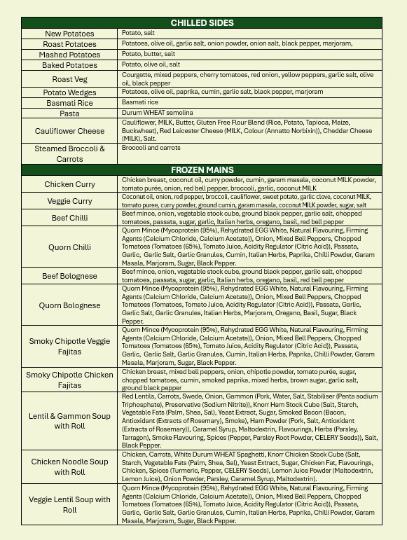 Cooked from Scratch using high quality ingredients and higher welfare meats. designed for busy households, elderly customers and anyone who needs reliable meals without the effort.